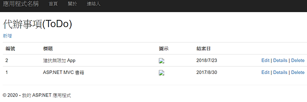 資料來源: Model 裡的 ToDo Table (tToDo)